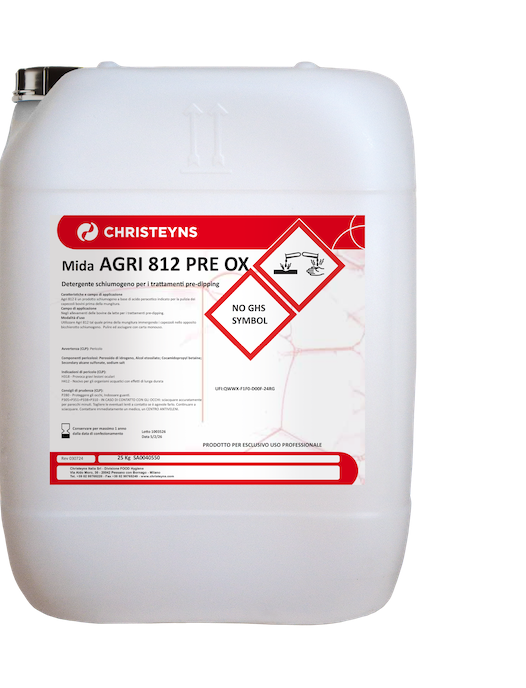 Utilizzare Agri 812 tal quale prima della mungitura immergendo i capezzoli nell’apposito bicchierotto schiumogeno. Pulire ed asciugare con carta monouso.